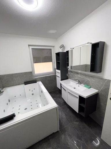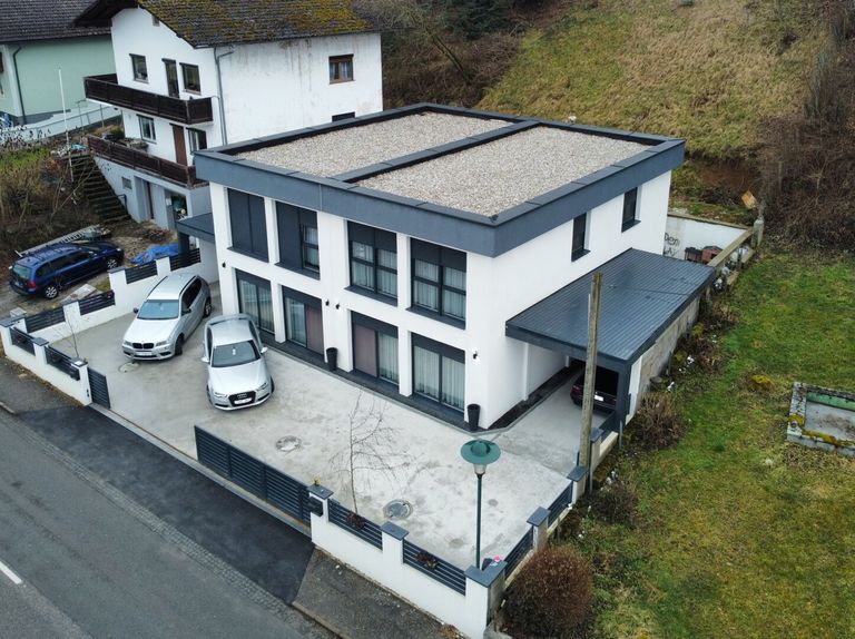 Das Haus wurde mit viel Liebe zum Detail geplant und in Massivbauweise errichtet. Die moderne Architektur mit Flachdach verleiht der Immobilie einen zeitlosen, eleganten Charakter. Auch die Ausstattung lässt keine Wünsche offen: Eine Fußbodenheizung sorgt in allen Räumen für behagliche Wärme, während die innovative Luftwärmepumpe eine kostengünstige und umweltfreundliche Beheizung garantiert.