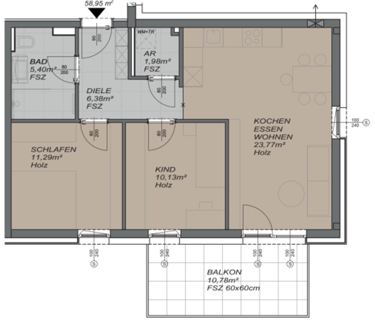 + Wohnungsfläche: 58,95 m²