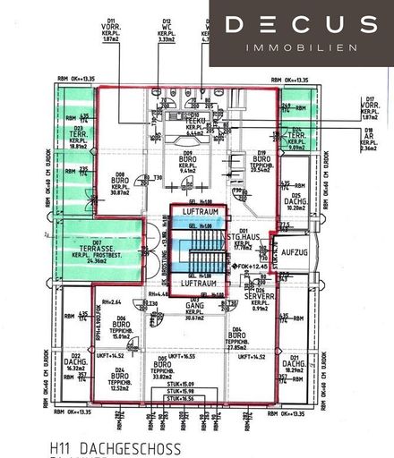 - 3. + 4.OG: ca. 496,65 m² zzgl. ca. 52,26 m² Terrasse (Miete: € 12.462,34/Monat/inkl. BK und Ust.)