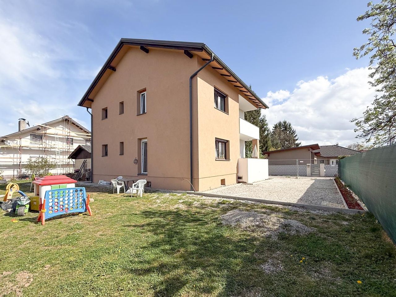 Hier könnte es Möglichkeiten zum Spielen, Gärtnern oder Grillen geben.