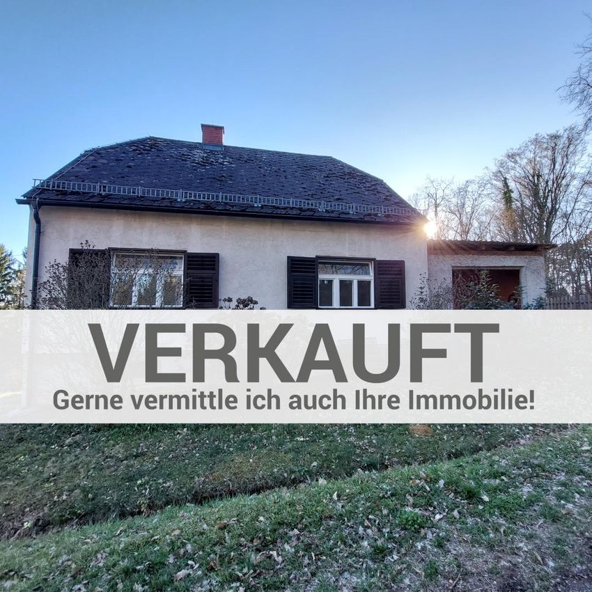 EINFAMILIENHAUS AM WALDRAND Lage Eingebettet in die idyllische Natur, bietet dieses Anwesen am Waldrand Ruhe und Sonnenschein. Das Einfamilienhaus wurde um 1968 in Ziegelmassivbauweise errichtet und befindet sich auf einem über 1.200 m² großen Grundstück zum überwiegenden Teil Baulandwohngebiet. Es bietet viel Potenzial zur individuellen Gestaltung sowie Wohnraumerweiterung sowohl im Keller als auch in Dachgeschoss. Die hohen Räume und die erhaltenen, intakten Kastenfenster verleihen dem Haus einen besonderen Charakter. Das Haus verfügt über drei Zimmer, Küche, Badezimmer mit Handwaschbecken und Dusche sowie eine separate Toilette. Im zentralen Vorzimmer befindet sich der mit Speckstein ummantelte Schwedenofen. Die Anschlüsse für Heizkörper sind...
