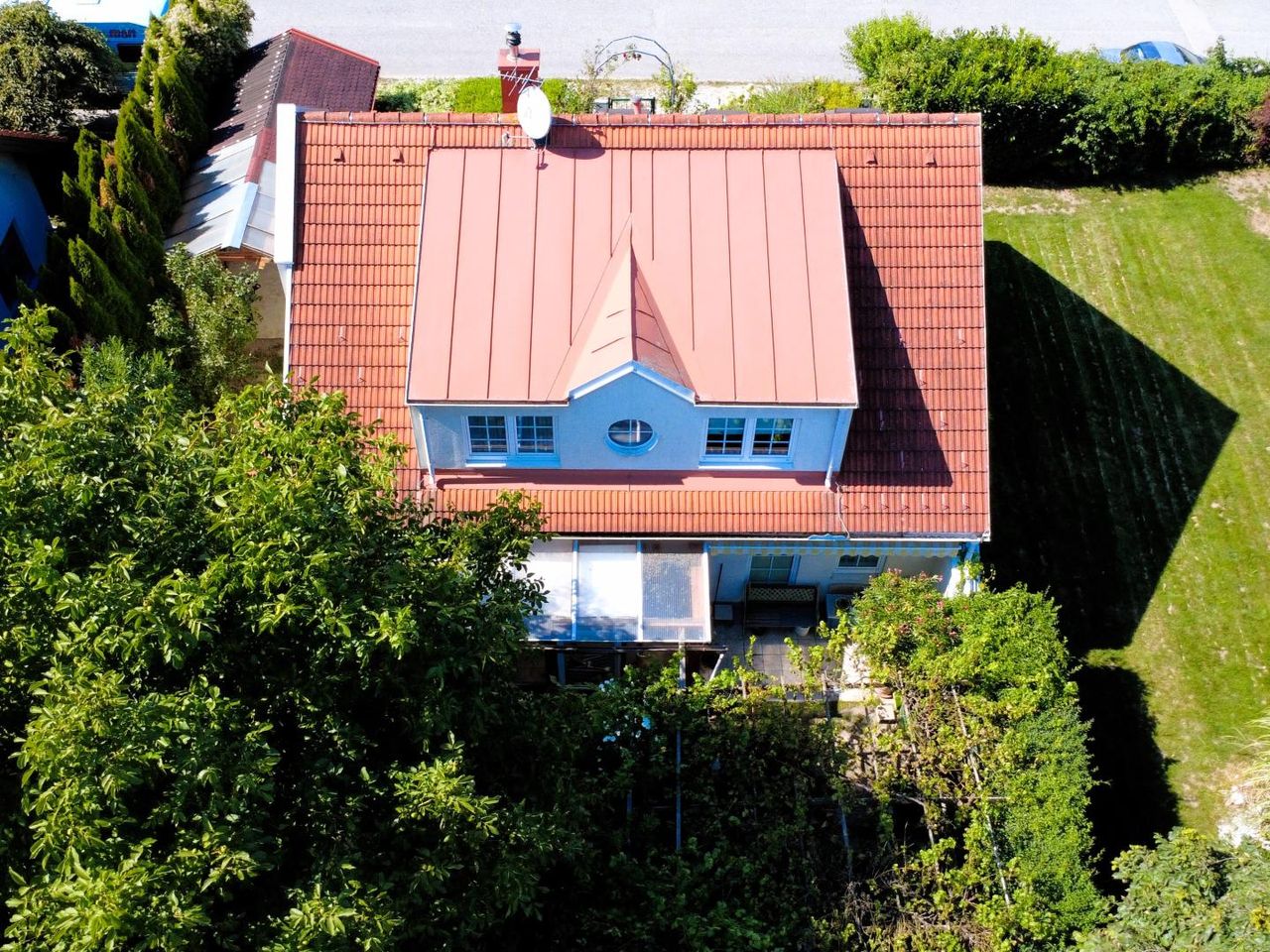 Der wunderschön gestaltete Garten ist ein Paradies für Naturfreunde und bietet neben einem großartigen Pflanzen- und Baumbewuchs eine schattenspendende Pergola aus Weinreben und Rosengewächs. Es ist ausreichend Platz zum Entspannen und auch für die lieben Kleinen vorhanden. 2 Gartenhäuschen, ein Geräteschuppen und Holzlager sowie ein großer Carport vervollständigen das ideal geschnittene Grundstück.