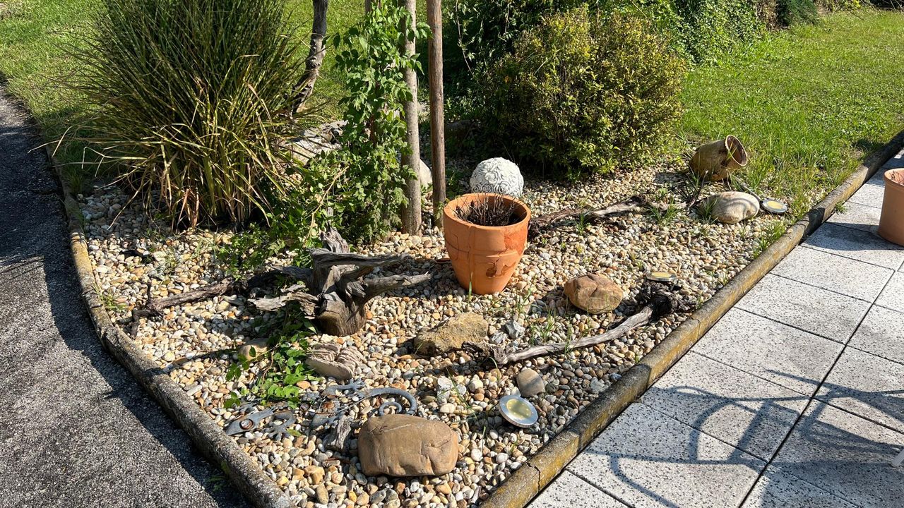 Besonders attraktiv ist das eingezäunte Grundstück, das nicht nur Privatsphäre bietet, sondern auch durch den Brunnen und den Swimmingpool zusätzlichen Komfort für die heißen Sommertage schafft.