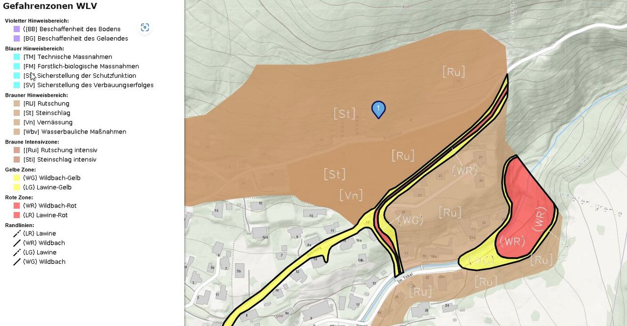 Das Grundstück ist erschlossen (Erdgas, Strom, Wasser) und befindet sich auf Grund der Hanglage in der braunen Gefahrenzone. Laut Bebauungsplan beträgt die Baunutzzahl 40 und die Gesamtgeschosszahl 2,5 (Info Baurechtsverwaltung) -> weitere Infos finden Sie unter den Dokumenten.