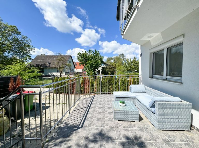 Die Haus befindet sich in einer sehr ruhigen Einfamilienhaussiedlung mit öffentlicher Anbindung. Die Autobusstation der Linie 550 befindet sich nur sieben Gehminuten vom Haus. Ein Kindergarten befindet sich wenige Gehminuten entfernt. Schulen, Supermärkte, sowie Ärzte und Apotheken befinden sich in der nächsten Ortschaft in Großenzersdorf, welche wenige Autominuten entfernt ist.