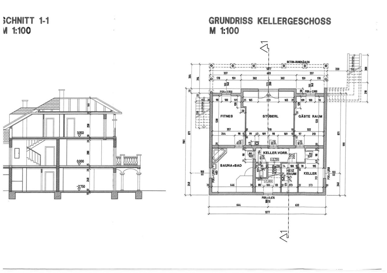 KELLEGESCHOSS: Gästezimmer, Heimkino, Wellnessbereich, Fitnessraum, jeweils mit Ausgang auf die überdachte Terrasse; Weinkeller, Technik;