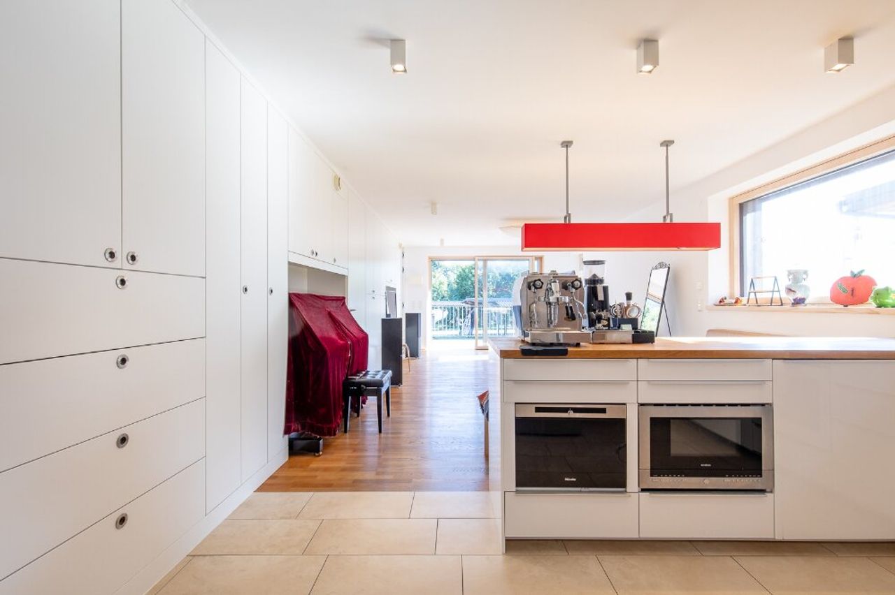 "Was für ein schönes Haus - hier möchte man sofort einziehen", kommt es durch den Sinn, wenn man erst einmal das Haus betritt. Kein Wunder: Das Haus stammt aus Architektenhand und wurde erst vor wenigen Jahren erbaut. Helle Sichtachsen und durchdachte Blickwinkel wohin man schaut. Jeder m2 Verkehrsfläche ist hier geplant. An hochwertiger Tischlerarbeit wurde nicht gespart. Und dabei ist alles auch noch unglaublich praktisch konzipiert und maßgeschneidert.