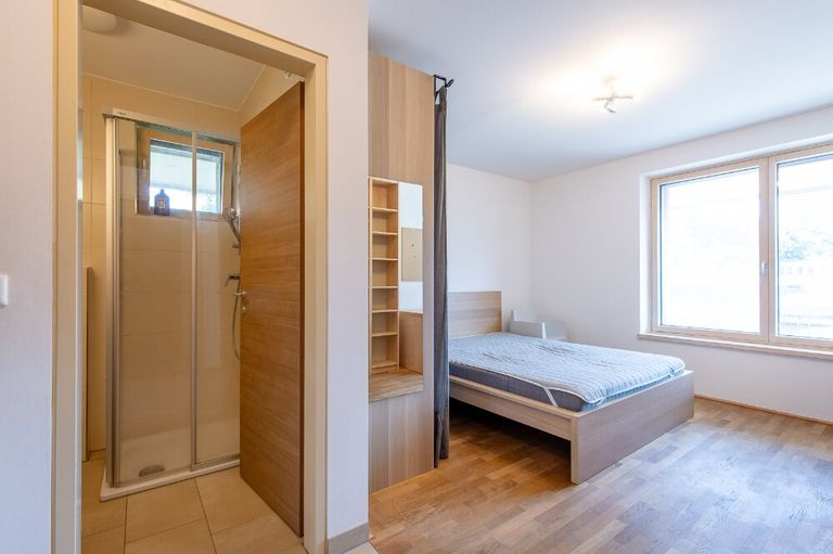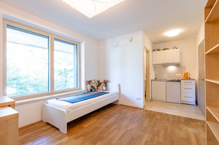 - OG: 4 Studios, jeweils mit Bad/WC und Teeküche und über das zentrale Stiegenhaus aufgeschlossen.