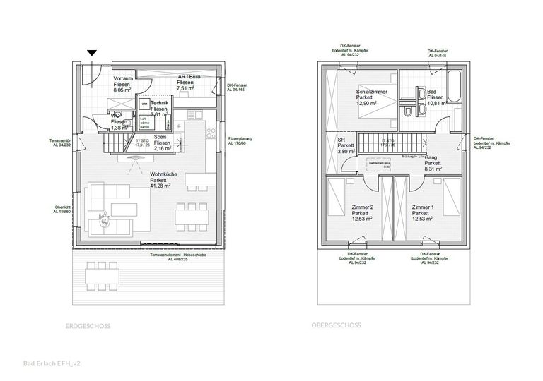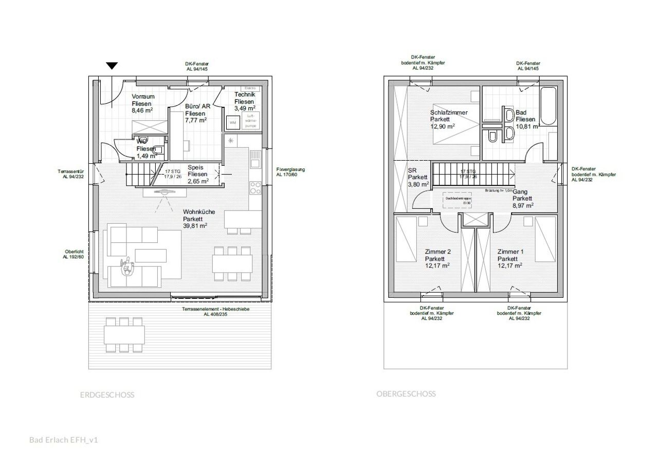 Erdgeschoss: großes Wohn- und Esszimmer mit offener Küche, Speis, Büro, Technikraum, WC, Vorraum