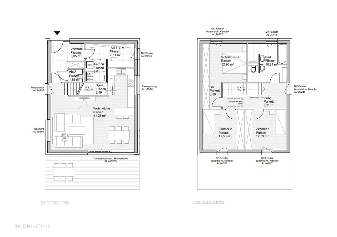 Heizung: Fußbodenheizung über Luftwärmepumpe | HWB: 35 kwh/m²a