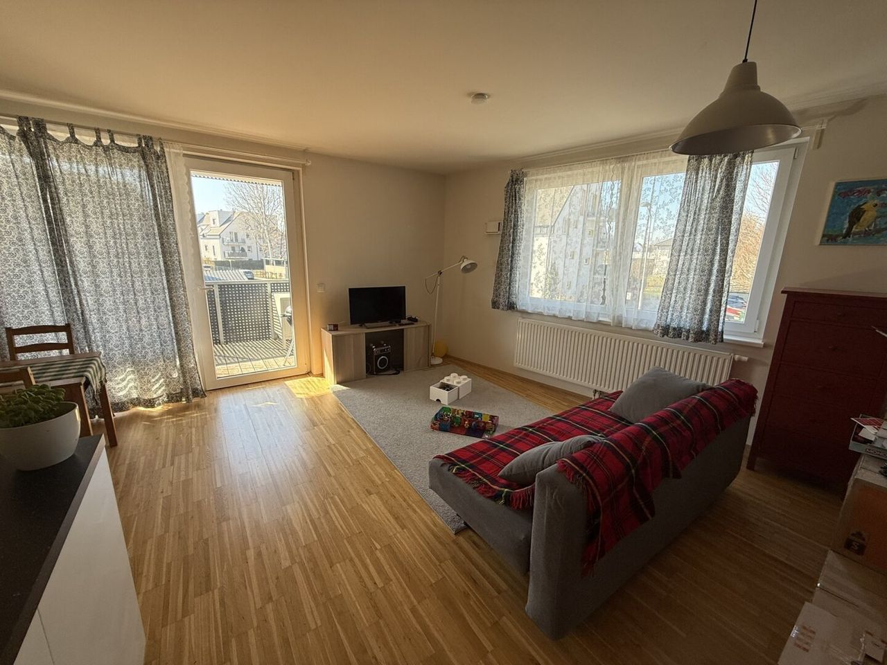 Das Herzstück dieser Wohnung ist der einladende Wohnbereich mit offener Küche. Neben den zwei hellen und freundlichen Zimmern, die sich ideal für eine Familie oder als stilvolles Home-Office eignen, steht ein geräumiges Bad und ein separates Wc zu Verfügung. Der durchdachte Grundriss lässt viel Raum für Kreativität beim Einrichten. Die großen Fenster sorgen für eine angenehme natürliche Beleuchtung und schaffen eine einladende Atmosphäre, in der Sie sich sofort wohlfühlen werden.