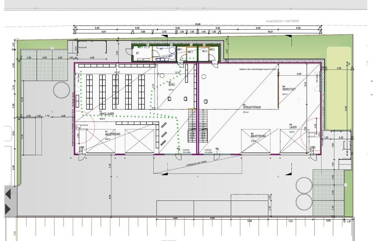 Die ausgegliederte Halle könnte im Bedarfsfall auch als eigenständige EH konzipiert werden, da Kanal und Wasser für die Versorgung dieser, getrennt zur Verfügung steht.