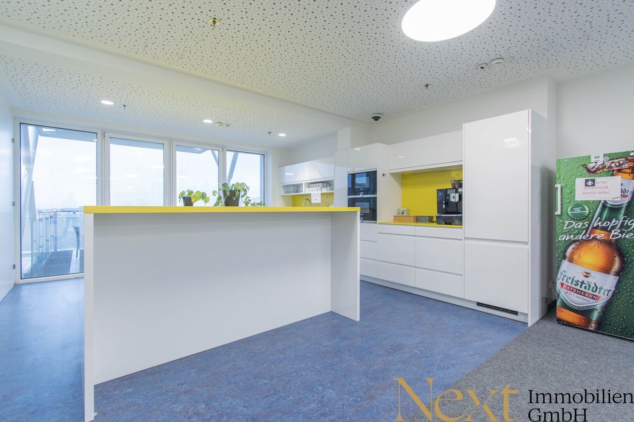 Erstklassige Bürofläche mit ca. 838m² in der PlusCity in Pasching zu vermieten! Die ca. 838,96m² große Bürofläche, die durch eine hervorragende natürliche Belichtung besticht, erstreckt sich über das 5. Obergeschoß und bietet sowohl Großraumbüros als auch flexibel nutzbare Einzelbüros. Mehrere Besprechungsräume und ein einladender Mitarbeiterbereich tragen zu einer angenehmen Arbeitsumgebung bei. Dank der Klimatisierung sind angenehme Temperaturen zu jeder Jahreszeit gewährleistet. Der Anschluss an schnelles Glasfaser-Internet und eine hochmoderne IT-Infrastruktur machen diese Fläche besonders attraktiv für diverse Unternehmen. Es sind ausreichend Sanitäranlagen vorhanden. Zudem stehen Ihren MitarbeiterInnen kostenfreie Parkplätze zur Verfügung. Auch Lagermöglichkeiten sind am Standort anmietbar. Optional können die...