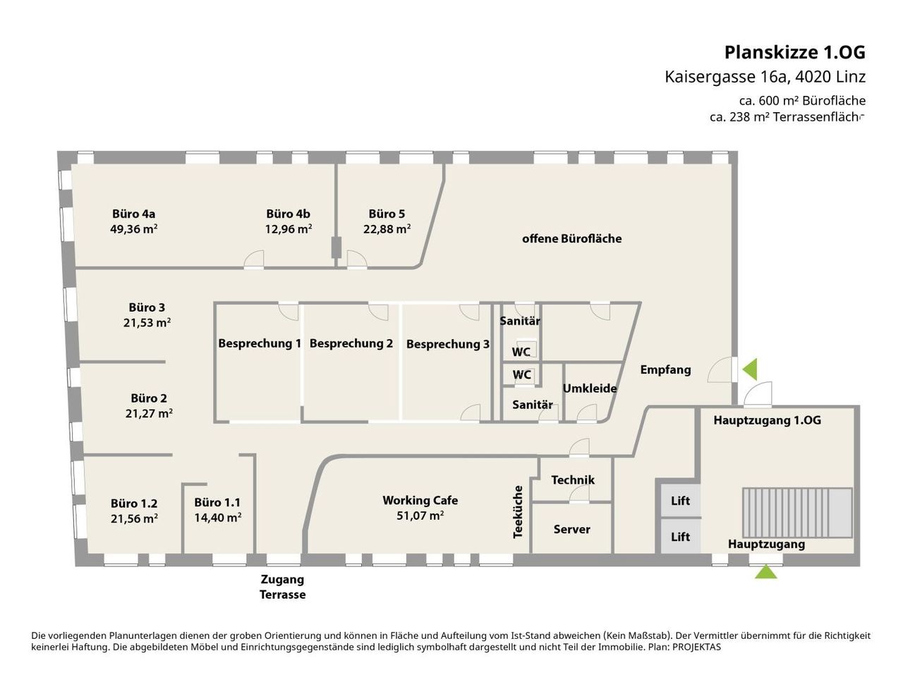 Bürofläche: ca. 600 m²