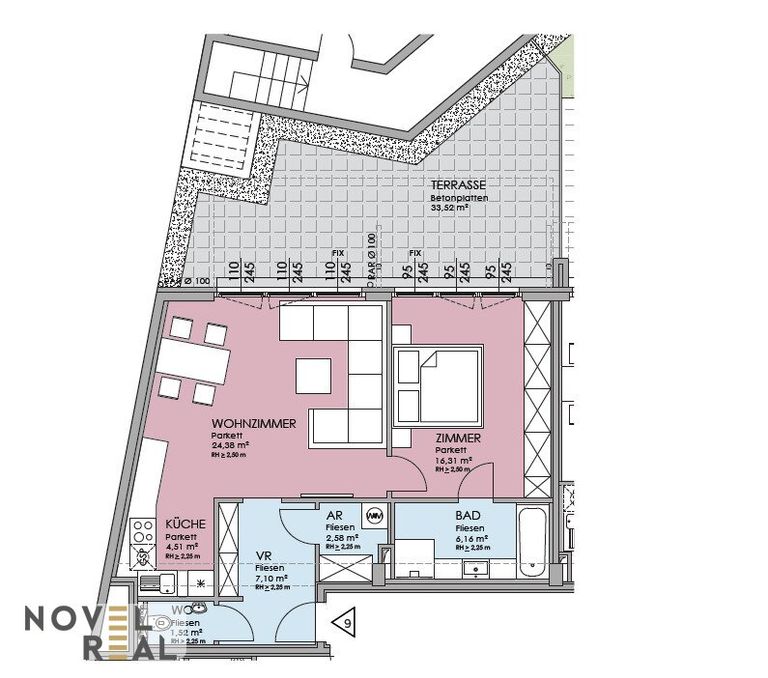 Die Maklergebühr ist ausschließlich bei Zustandekommen eines gültigen Rechtsgeschäfts fällig und vom Käufer an Novel Real Immobilien GmbH zu zahlen. Es wird ausdrücklich auf die Nebenkostenübersicht hingewiesen. Bei den Visualisierungen und Abbildungen der Immobilie (insbesondere von Inneneinrichtungen) kann es sich um Symbolfotos bzw. fototechnisch optimierte Fotos handeln. Die in diesem Exposé veröffentlichten Inhalte und Fotos unterliegen dem österreichischen Urheberrecht. Jede Vervielfältigung, Bearbeitung, Verbreitung und jede Art der Verwendung bedürfen der vorherigen schriftlichen Zustimmung der Novel Real Immobilien GmbH.