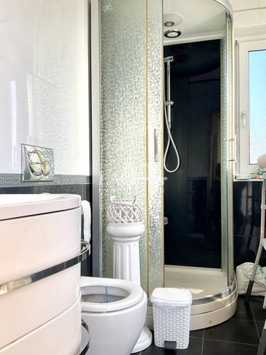 - Tageslicht-Bad mit Whirlwanne für 2 Personen, Dusche und WC