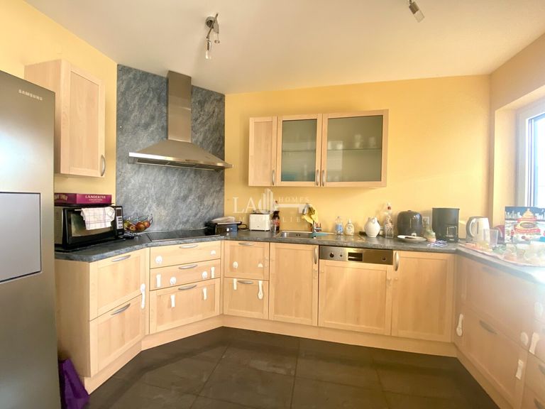 Die Küche bietet jede Menge Freiraum für Hobbyköche, während der großzügige Wohn- und Essbereich zum geselligen Zusammensein einlädt.