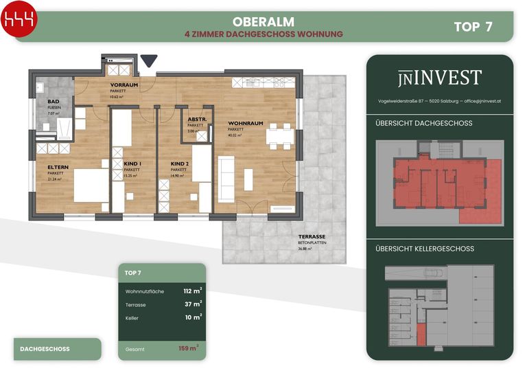 Das Bauprojekt besteht aus nur 8 Wohneinheiten. Für 2, 3, 4-Zimmer-Wohnungen, über 3 Stockwerke verteilt, wurden hier Grundrisse von ca. 40 m² bis ca. 113 m² geplant. Jeder Wohnung ist auch ein Außenbereich zugedacht, mit Garten im Erdgeschoß und Balkonen in den oberen Geschoßen, sowie einer grandiosen Terrasse für das Penthouse.