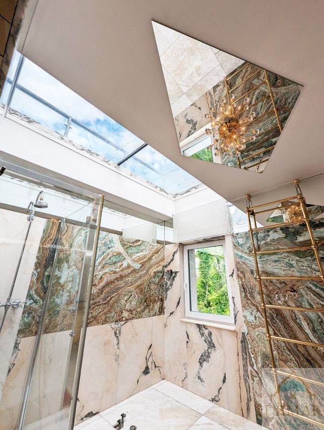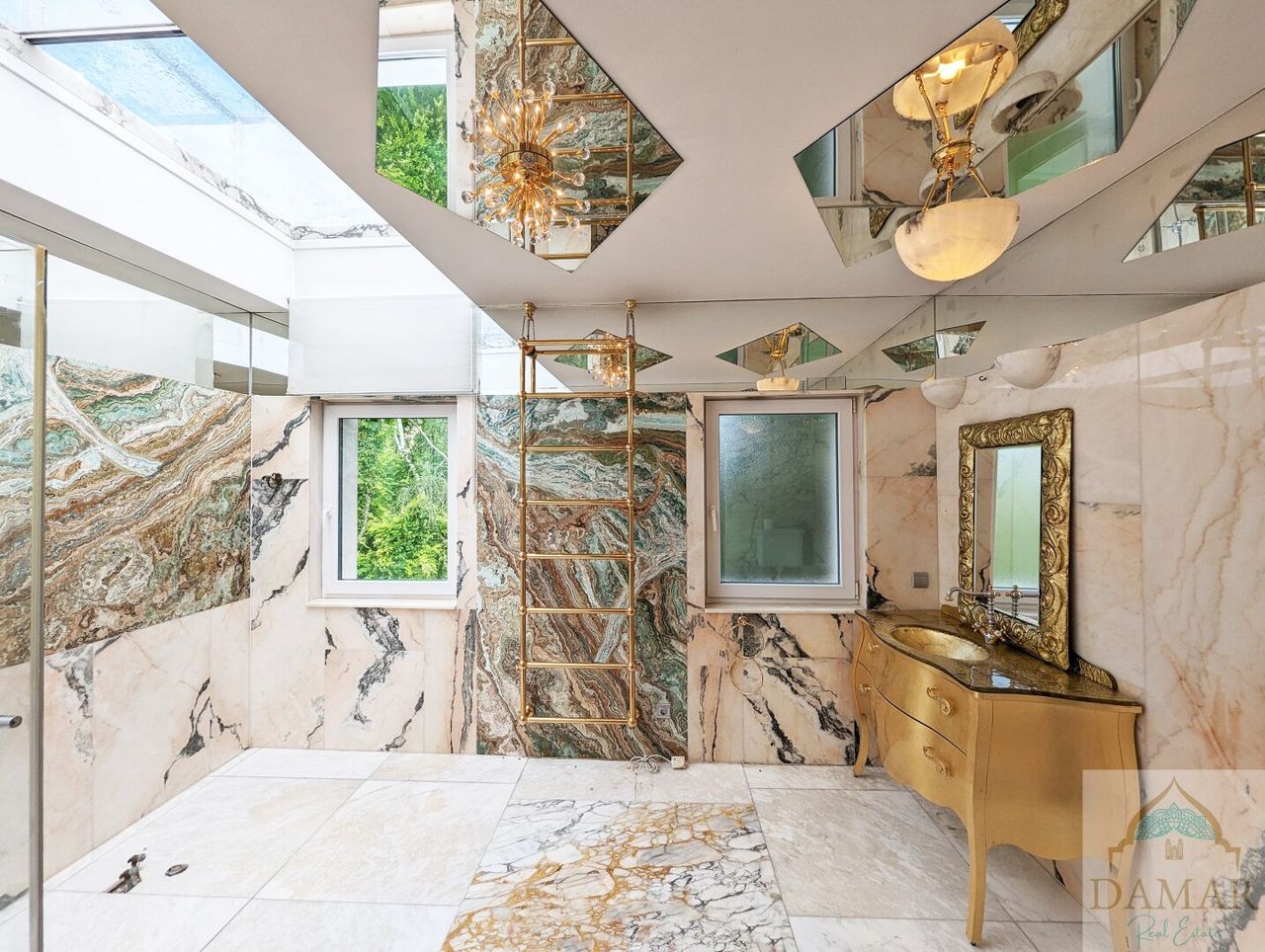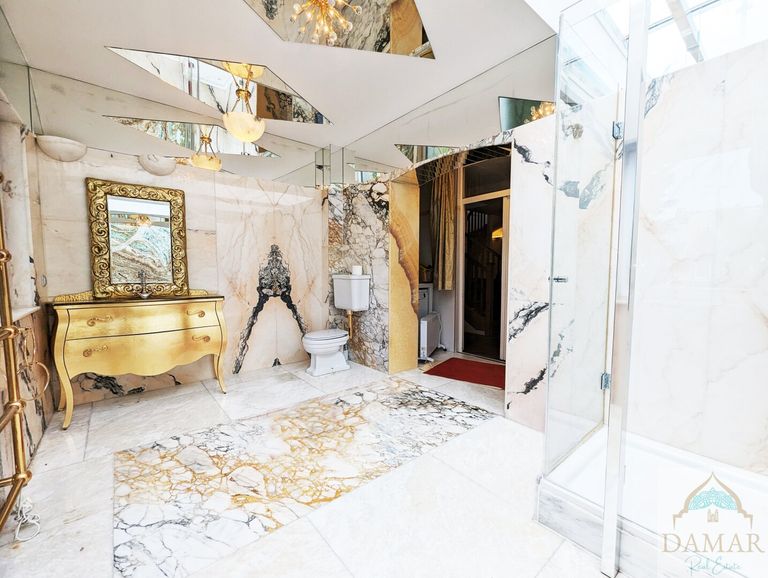 Ausgestattet mit hochwertigen Materialien wie Marmor, stilvollen Regalen und hochwertigen Einrichtungsgegenständen, die dem Haus einen stilvollen und eleganten Touch verleihen genießen Sie Luxus und Wohlbefinden. Die Gas-Zentralheizung sorgt für wohlige Wärme an kalten Tagen und die Einbauküchen bieten Ihnen alles, was Sie für das Zubereiten von köstlichen Mahlzeiten benötigen. Ein weiteres Highlight ist der Personenaufzug, der Ihnen das lästige Treppensteigen erspart.