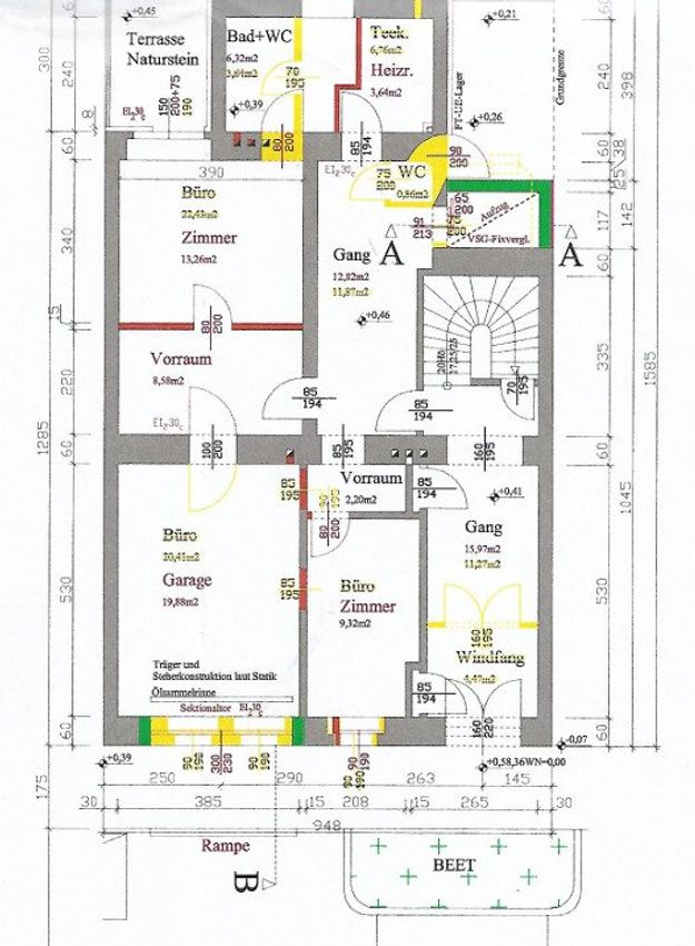 - Erdgeschoß: Garage, 4 Zimmer, Küche, Bad (Rollstuhlfahrer geeignet), WC und Gangbereich - Nutzfläche ca. 106 m2 mit einer Raumhöhe von 3,50 m.