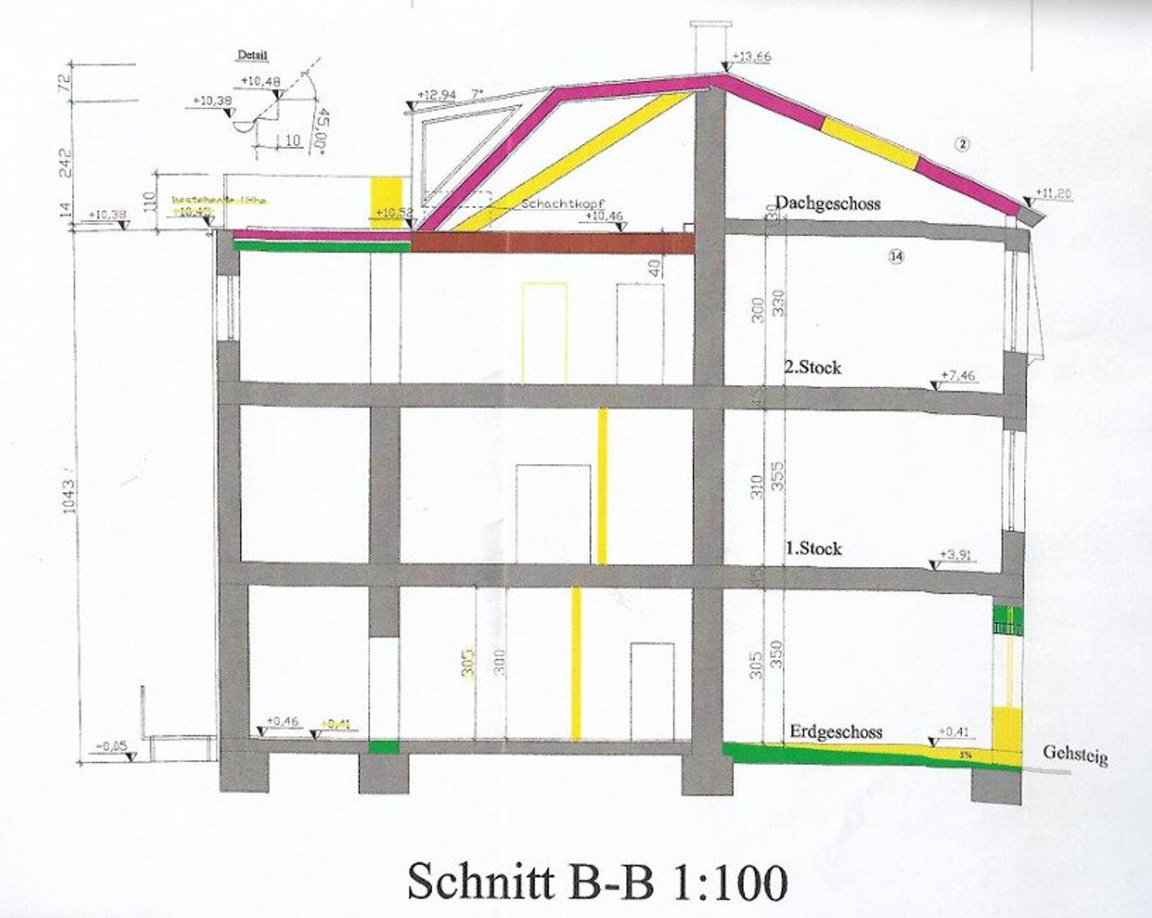- Dachgeschoß: hier erwartet sie die 15 m2 große Dachterrasse mit Blick auf den Kahlenberg, Wohnfläche ca. 106 m2 hat eine Raumhöhe von ca. 2,50 m.