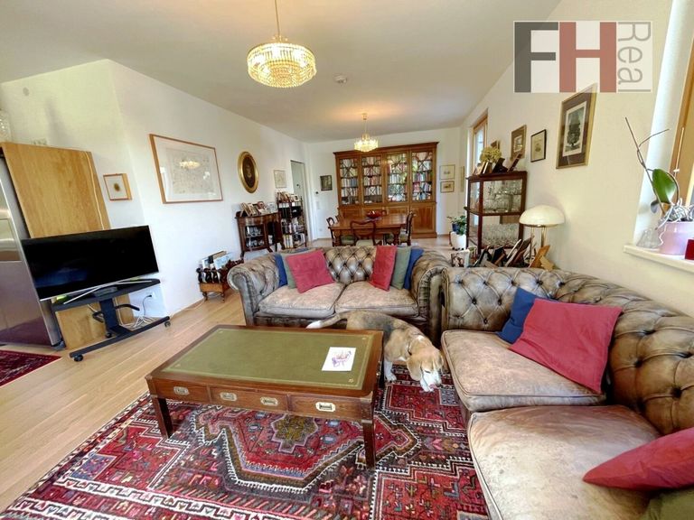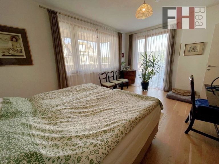 Die luxuröse Wohnung selbst ist barrierefrei, auch über die Garage gut zu erreichen und hochwertig bestens ausgestattet. Die geräumigen 4 Zimmer sind zentral begehbar; eine voll ausgestattete Vollholz-Tischler-Küche mit Miele-Geräten ist sehr charmant und wurde durch das Enfernen einer Zwischenwand an das großzügige Wohnzimmer angepasst bzw. vergrößert. Das somit rund 45,38m² große Wohnzimmer inkl. offener Küche ist aufgrund der Vielzahl an Fensterflächen und diversen Ausgänge auf die 66,08m2 große Terrasse und in den ca.526,64m2 großen eigenen Prachtgarten mit tollem Fern- und Grünblick mehr als einladend. Die beiden Schlafzimmer und der Arbeitsraum (Büro) sind vernünftig dimensioniert und mit abgestimmten Einbaumöbeln passend ausgestattet. Diese 3 Zimmer haben selbstverständlich auch einen direkten Ausgang in den Garten bzw. Terrasse und somit einen ruhigen Grün- und Waldblick. Komplettiert wird das Raumangebot mit zwei Badezimmern, jeweils mit Toilette, Badewanne. bzw. Dusche. Eine Gästetoilette ist zusätzlich und selbstverständlich. Weiters vom Vorraum begehbar besteht ein Abstellraum und ein großzügiger eigener Schrankraum zum Schlafzimmer. Ein eigener großer Lagerraum im Keller von mehr als 20,59m² mit Licht- und Stromanschluss steht ebenfalls zur Verfügung. Ein Tiefgaragenplatz mit Fernbedienung ist im Kaufpreis inkludiert.