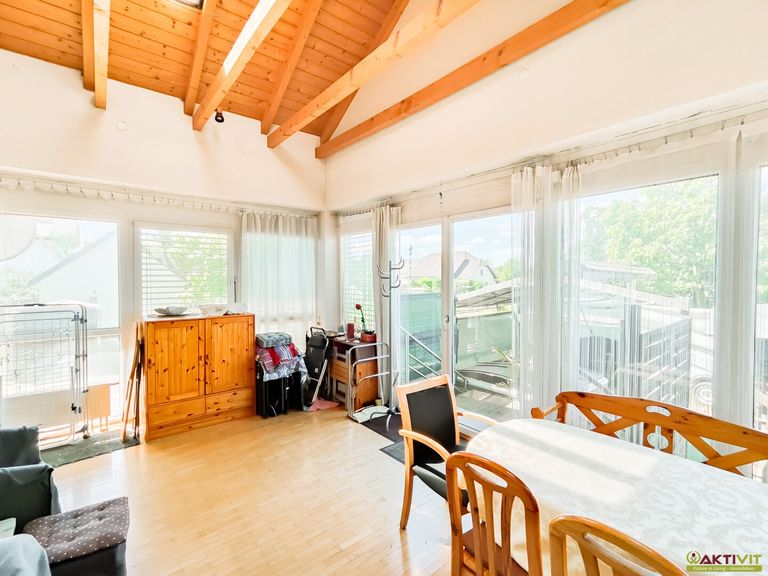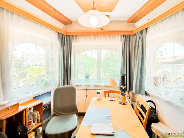 Das Haus bietet 6 Zimmer inklusive einer gemütlichen Wohnküche mit Kamin, einen hellen Wintergarten sowie ein ausbaubares Dachgeschoß.