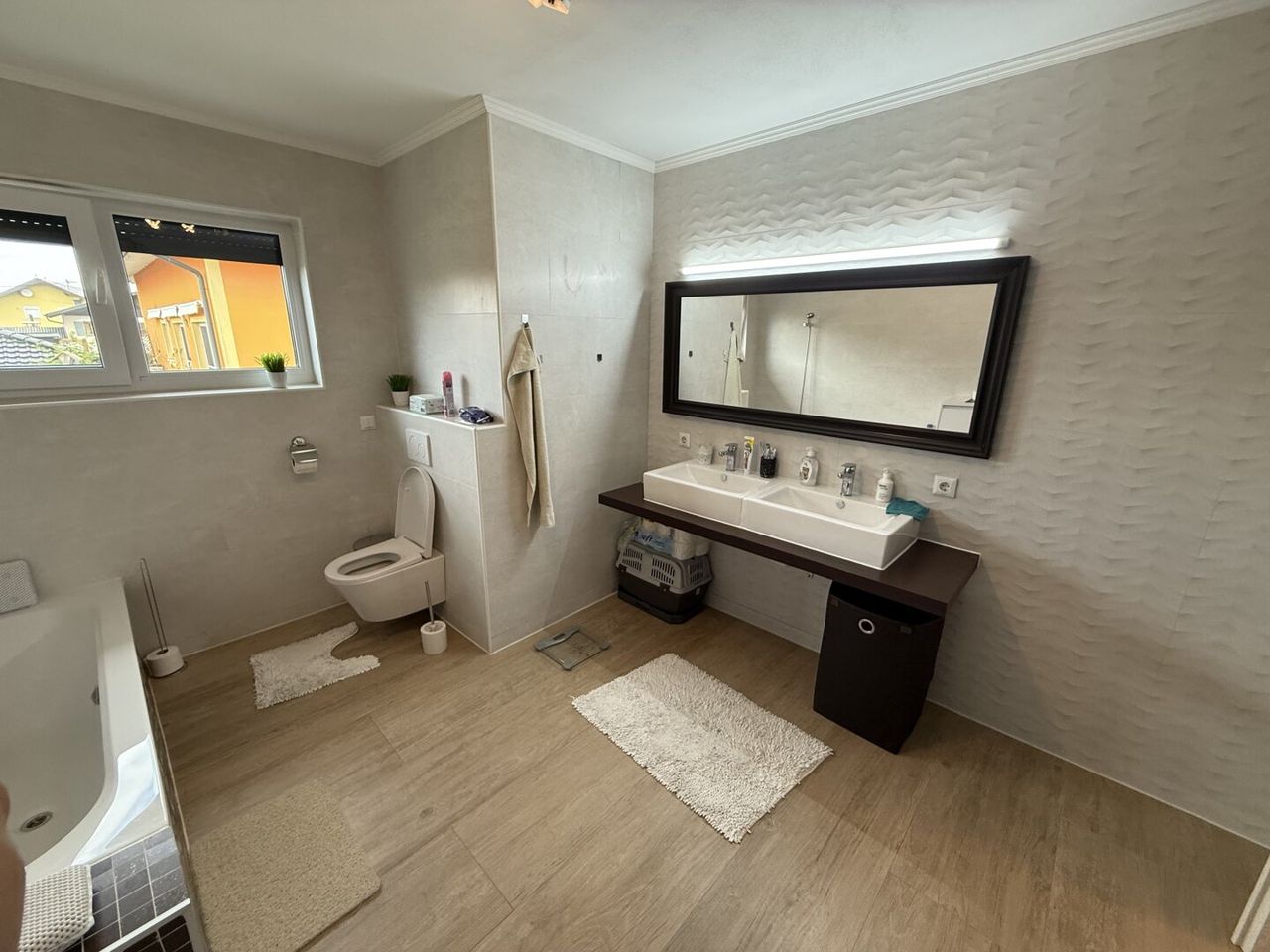 Beheizt wird das Haus über eine umweltfreundliche Luftwärmepumpe 🌬️🌱, die über die Fußbodenheizung in allen Wohnräumen für angenehme Wärme sorgt.