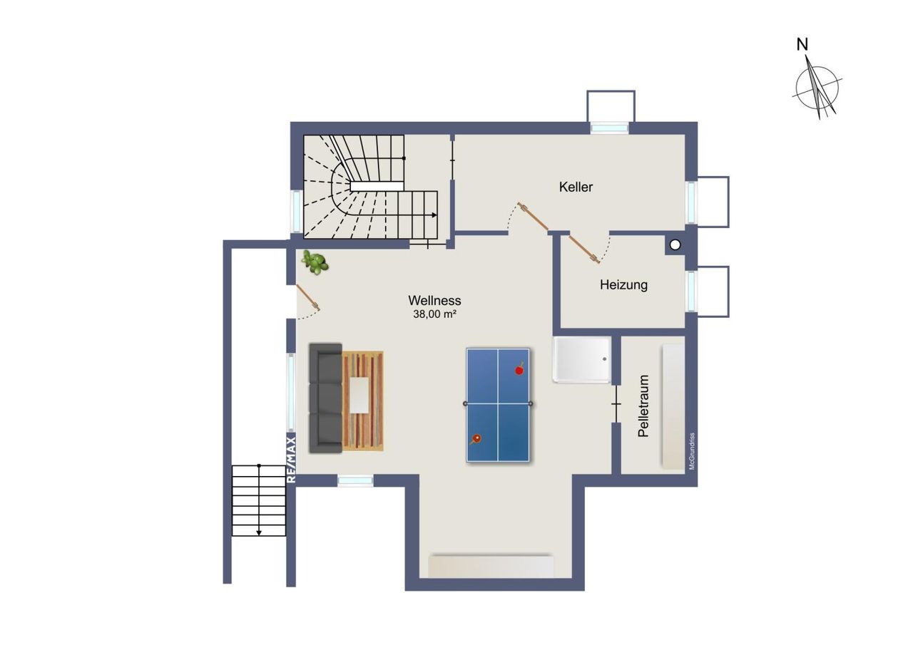 Der großzügige Keller, auch von außen getrennt begehbar, ist ideal für Lagerung, Hobbys oder als Fitnessraum.