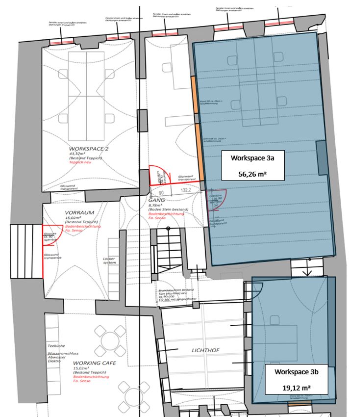 + Workspace Großraum (mit ca. 90 m², passend als Studio)