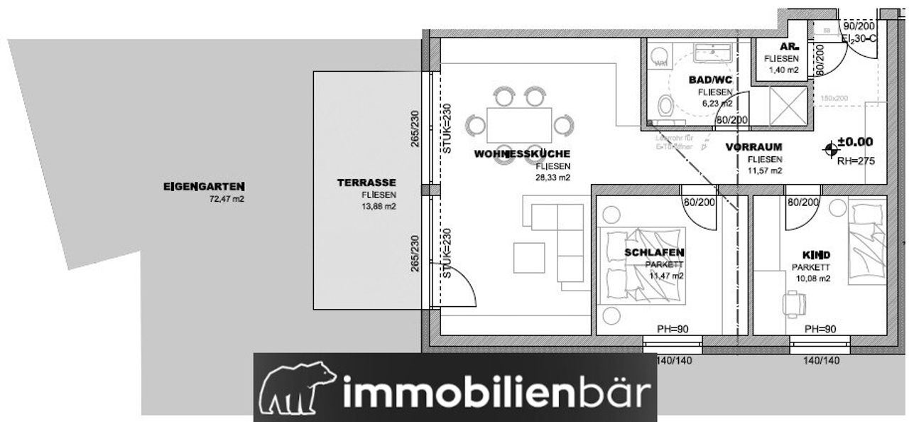- ca. 72 m² Garten