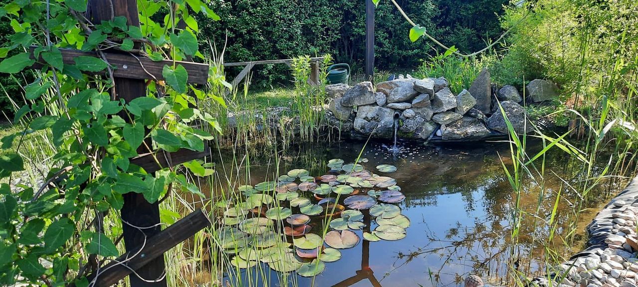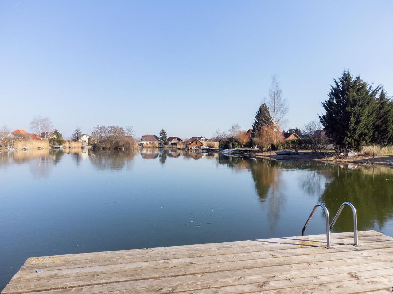 Der Garten ist durch die hohen Sträucher und Bäume uneinsichtig und lässt Raum für Entspannung, Natur genießen und Zeit mit Familie und Freunden zu genießen. Der Parkplatz gestattet Platz für 2 PKW-Abstellplätze. Über einen kurzen Fußweg erreichen Sie den See und ihr Urlaub zuhause kann beginnen.