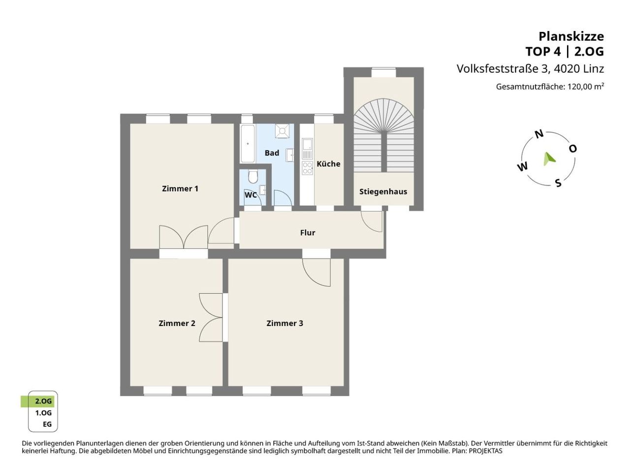 Raumaufteilung der Top 4 mit ca. 120m² Wohnfläche: