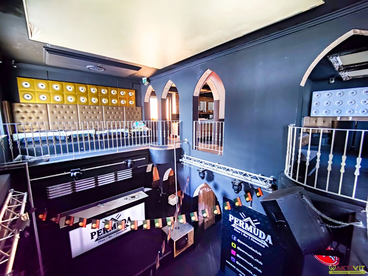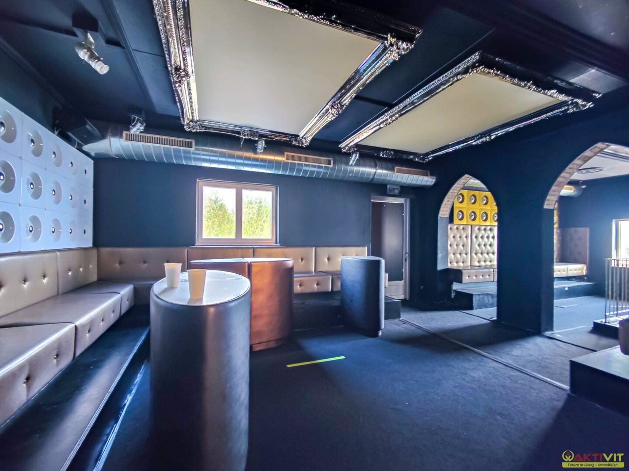 Der Club umfasst großzügige Innenflächen auf zwei Etagen, Lagerbereiche, Sanitäranlagen sowie rund 50 Pkw-Stellplätze – ideal für Veranstaltungen, Gastronomie oder alternative gewerbliche Nutzung.