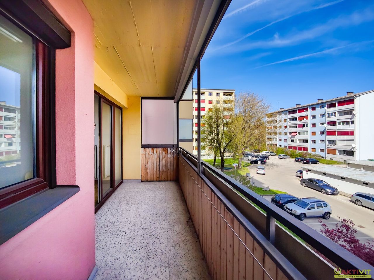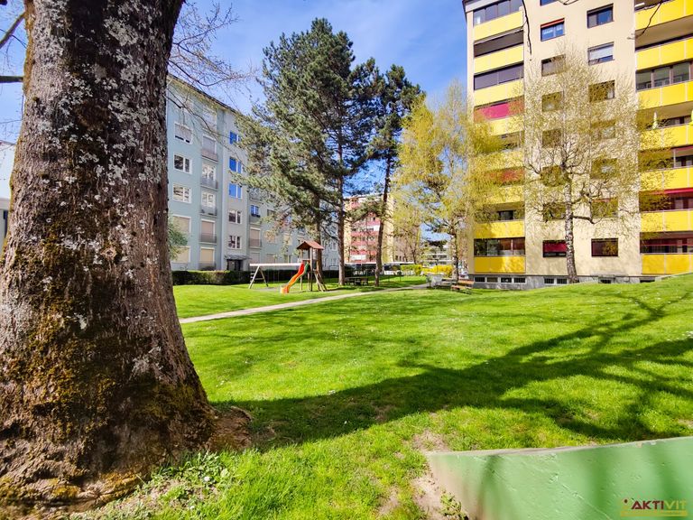 Die Wohnung befindet sich im 2. Obergeschoss und ist bequem mit dem Lift erreichbar. Auf einer Fläche von ca. 85 m² gliedert sich die Raumaufteilung in vier Zimmer, eine Küche, ein Badezimmer mit Badewanne, ein separates WC, zwei Abstellräume sowie einen Vorraum. Der rund 9,5 m² große Balkon ist ostseitig ausgerichtet und bietet angenehme Morgenstunden im Freien sowie einen weitläufigen Stadtblick.