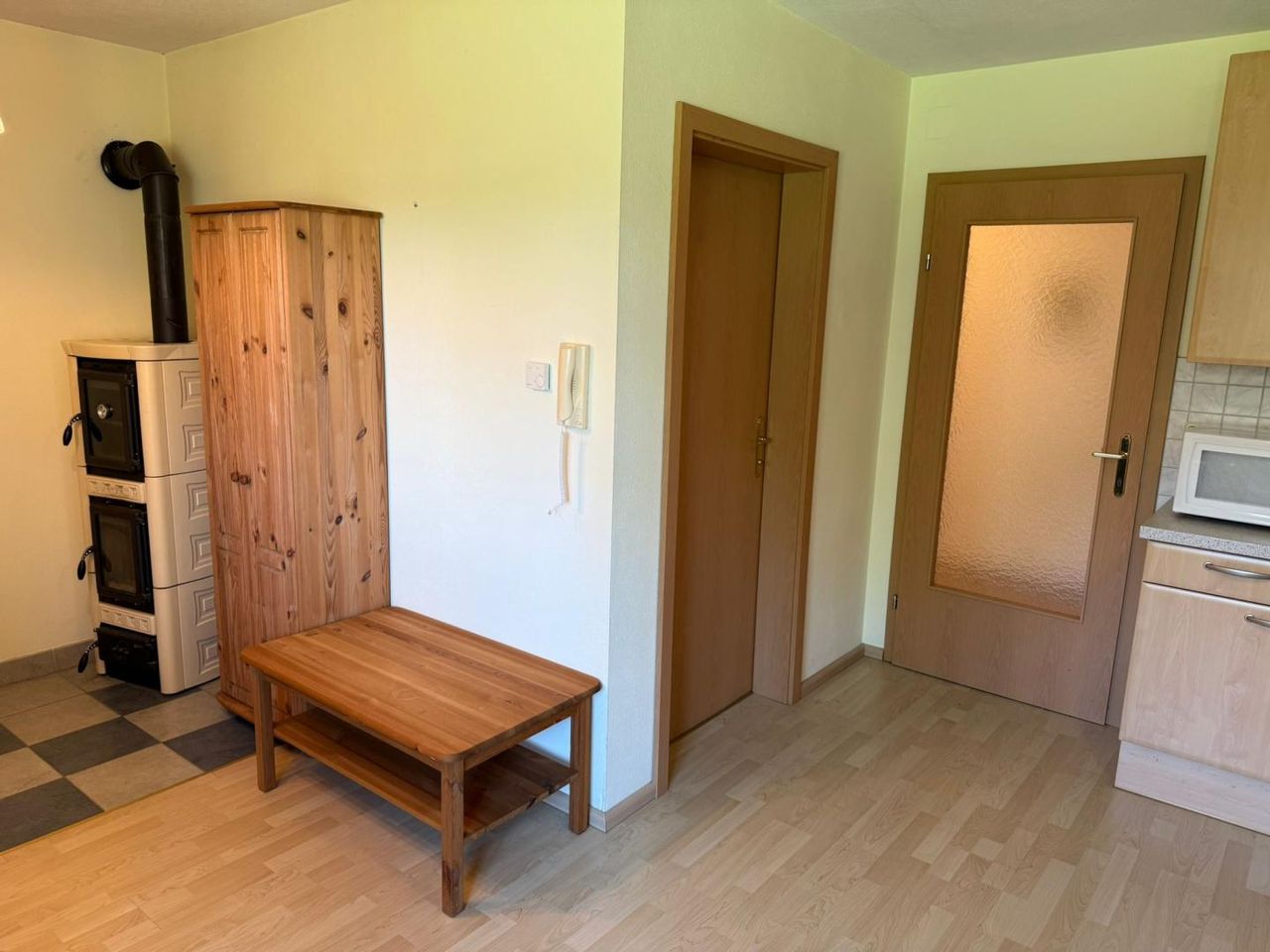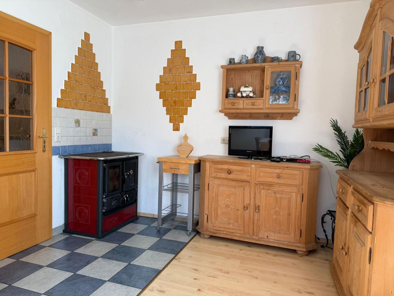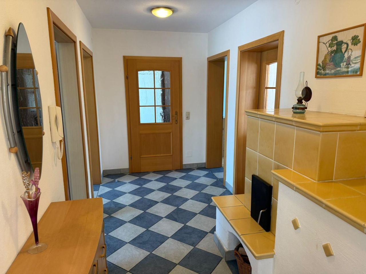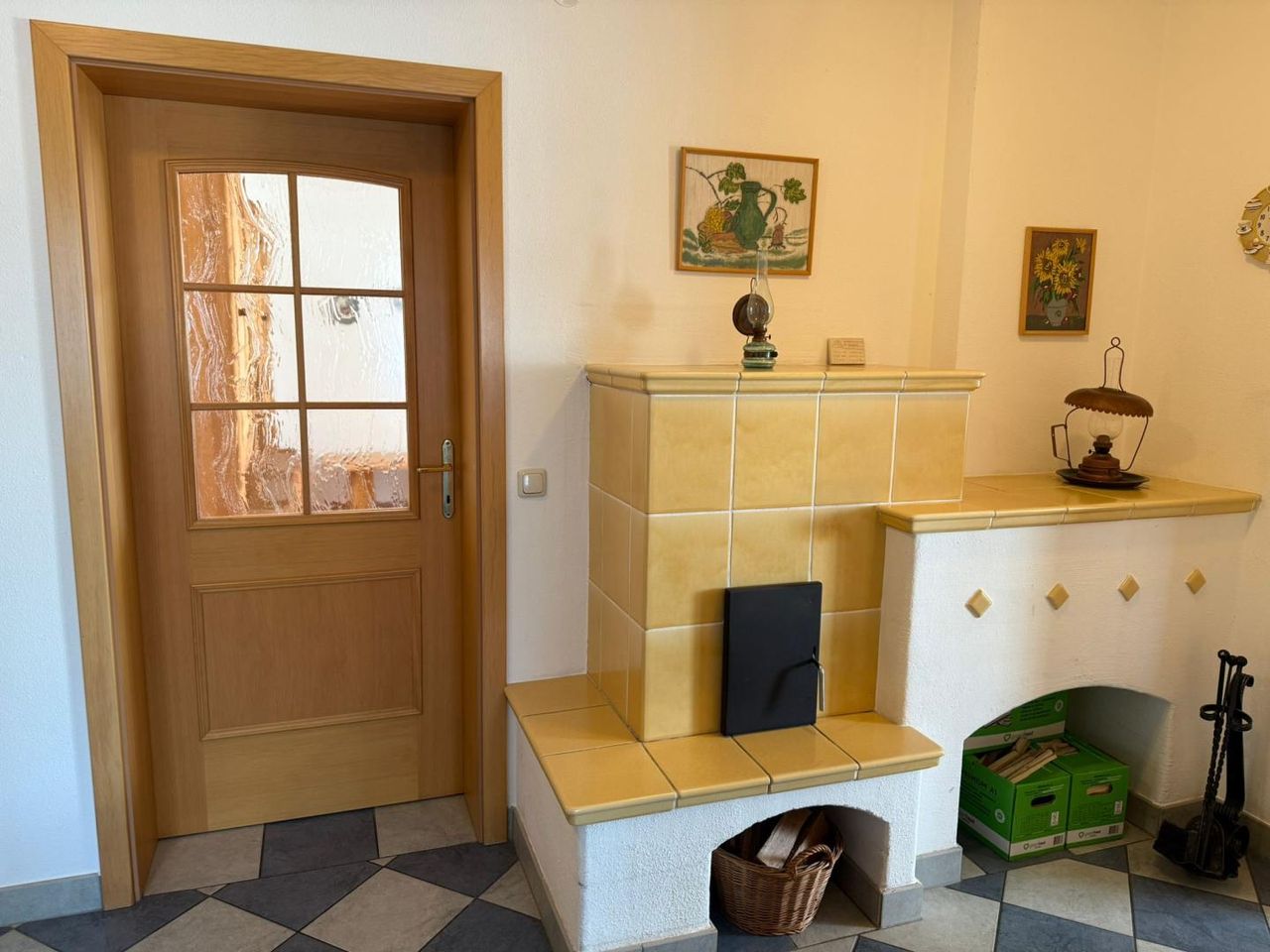 - Kachelofen in Wohnzimmer und Diele