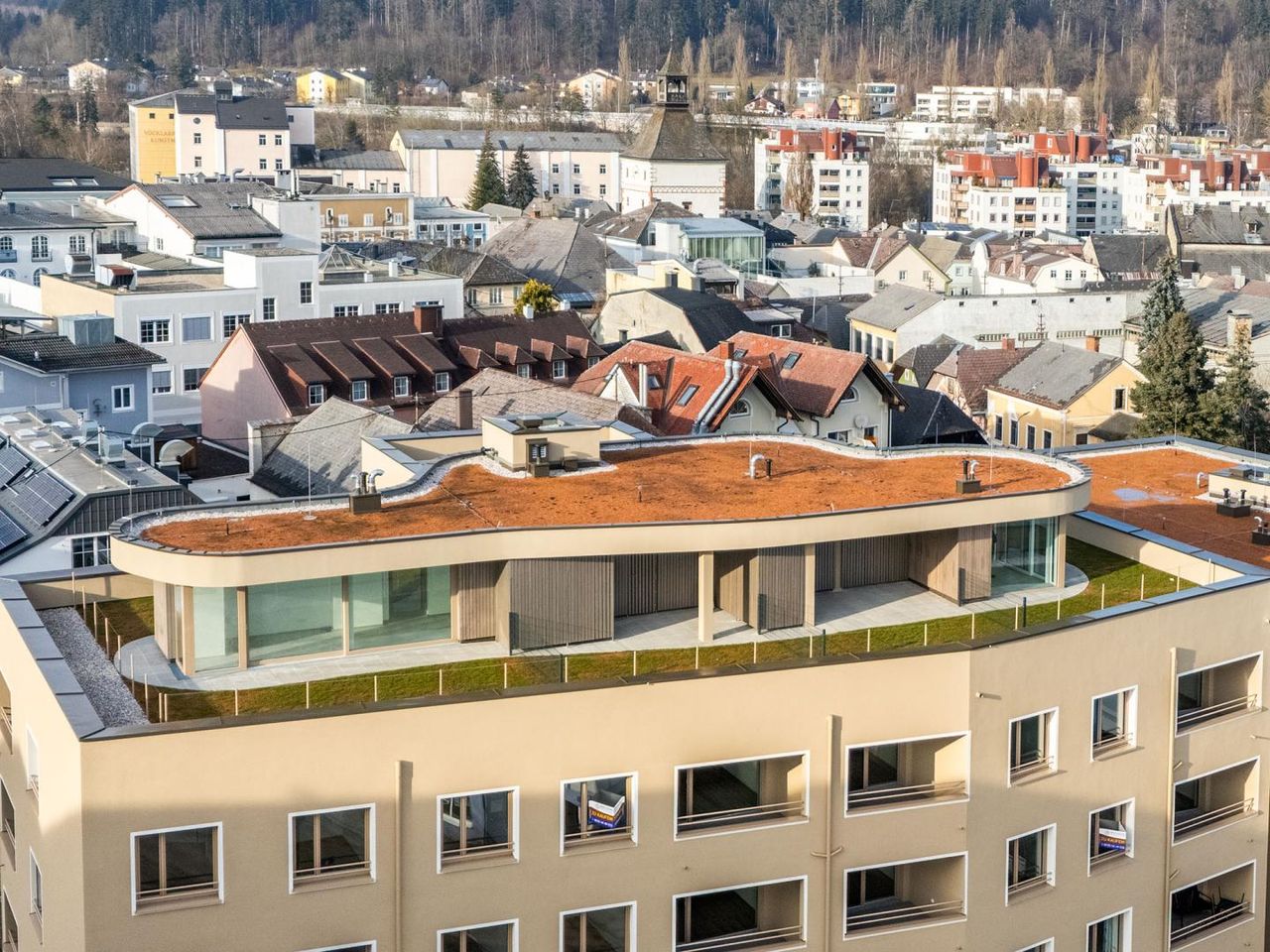 Ein echtes Highlight der Anlage stellen die Penthouse-Wohnungen dar, die neben geräumigen Loggien teilweise auch über begrünte Dachgärten und Dachterrassen verfügen. Ein herrlicher Ausblick über die Dächer von Vöcklabruck wird geboten!