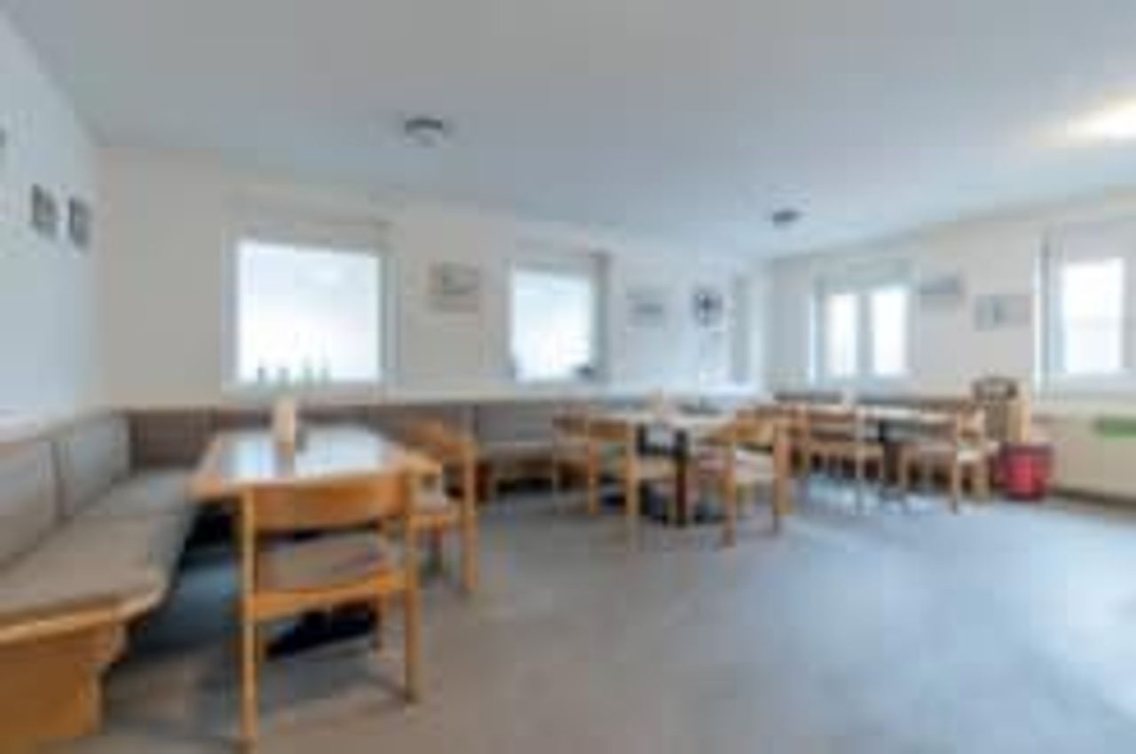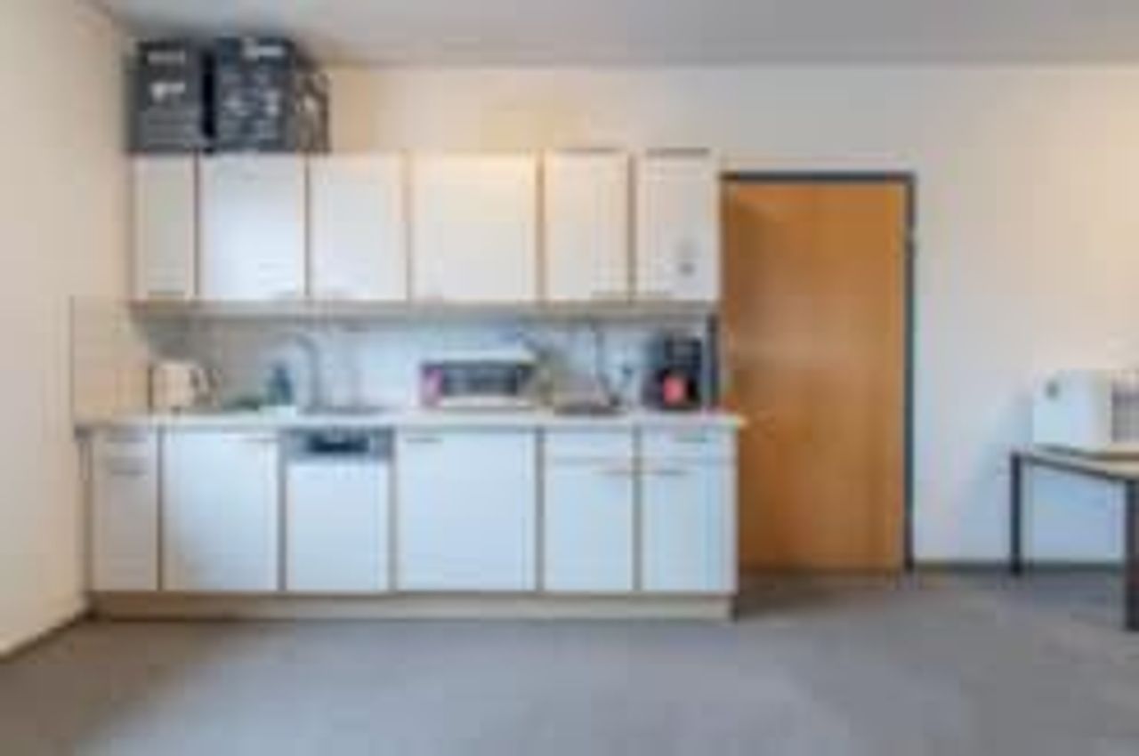 Es gibt einen großzügigen Sozialraum mit Küche.