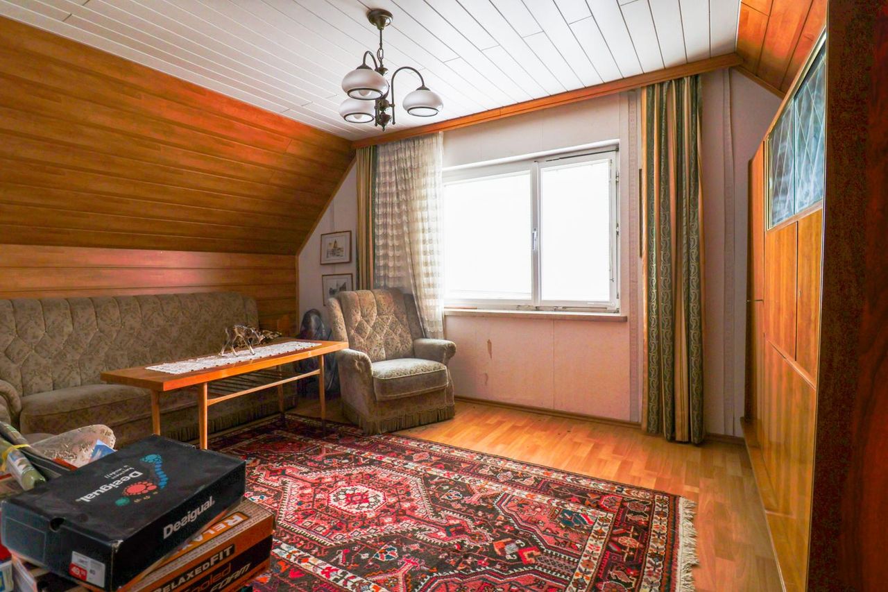 Im Erdgeschoss betritt man das Haus über einen kleinen Windfang, von dem aus man in den Vorraum gelangt. Von hier aus öffnen sich die Küche, das Wohnzimmer sowie der Zugang ins Dachgeschoss. Die Küche besticht durch ihren Tischherd, während im Wohnzimmer ein Kaminofen steht, der allerdings nicht mehr funktionstüchtig ist. Die Räume wirken vertraut und bodenständig, sind aber deutlich renovierungsbedürftig. Das Dachgeschoss bietet mit einem Schlafzimmer von etwa 16 m² und einem kleineren Kabinett zusätzlichen Platz für ein kompaktes, gut strukturiertes Wohnkonzept. Auch der Keller bietet praktische Nutzfläche, wie man sie von Häusern dieser Zeit kennt.
