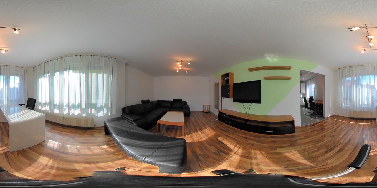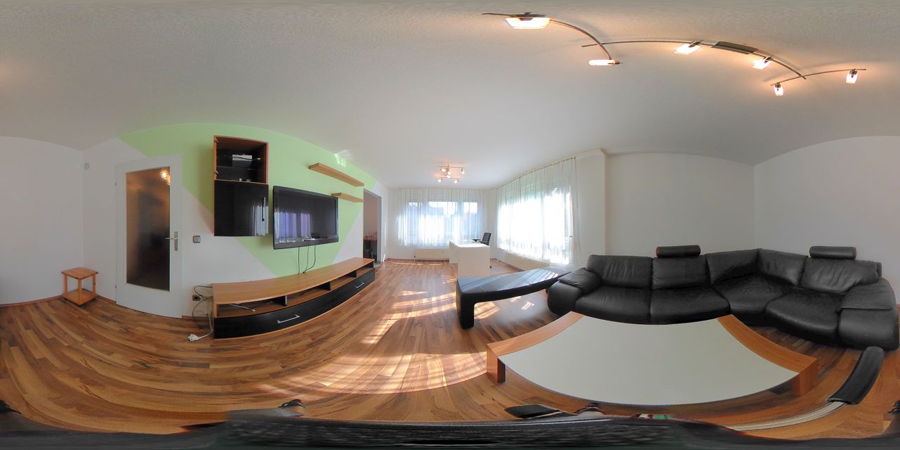 Das Herzstück der Wohnung ist das helle Wohnzimmer mit zahlreichen Fenstern, die für ein außergewöhnlich lichtdurchflutetes Raumgefühl sorgen. Außenrollos an allen Fenstern bieten zuverlässigen Sonnen- und Sichtschutz.