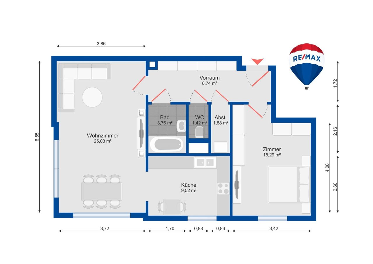 Diese charmante 2-Zimmer-Wohnung im 4. Liftstock bietet mit ca. 65 m² Wohnfläche ein komfortables Zuhause für Singles, Paare oder auch als Zweitwohnsitz.