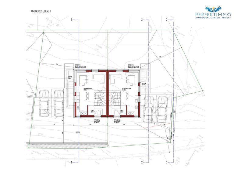 Pro Haus sind 2 Stellplätze geplant, welche bei Haus 03 gegen Aufpreis und bei behördlicher Genehmigung überdacht oder als Garage ausgeführt werden können.