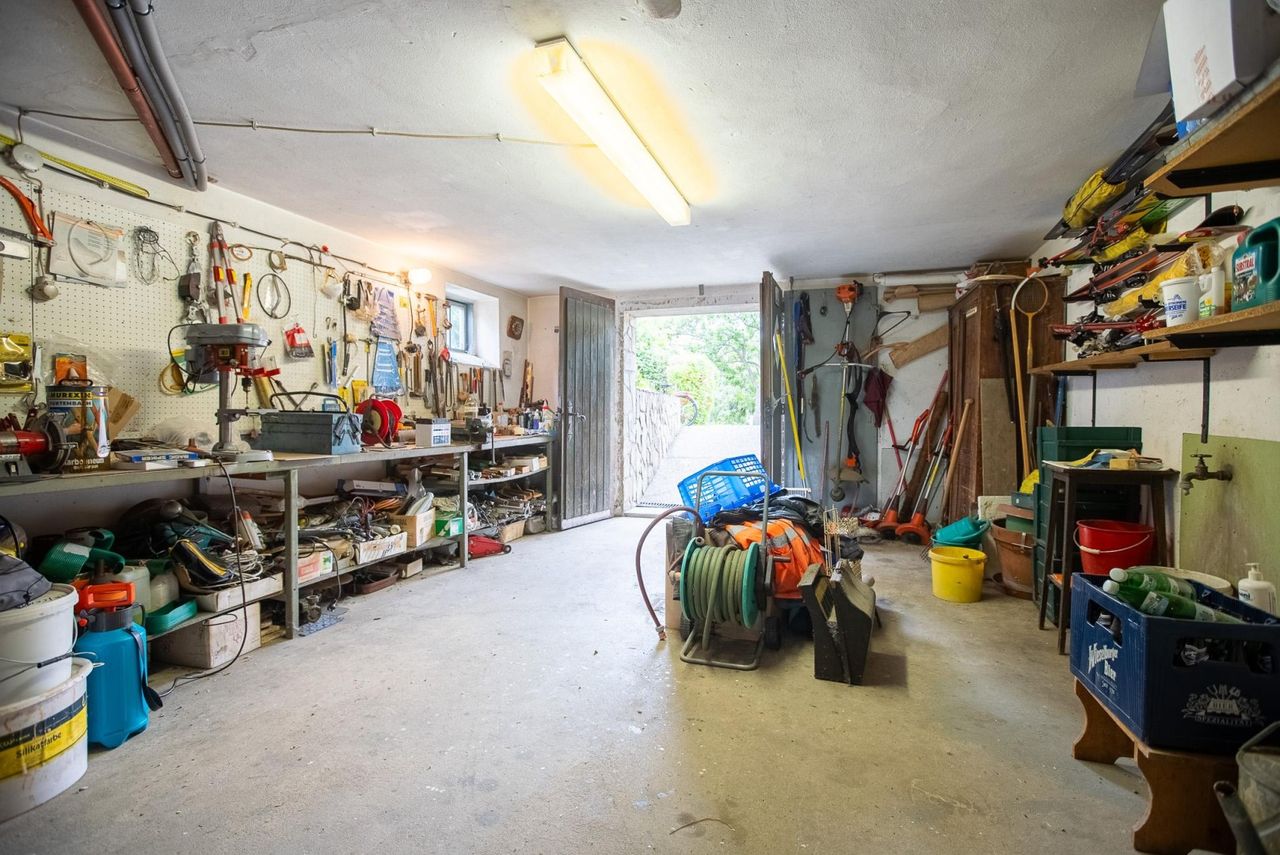 Durch die großzügige Raumaufteilung eignet sich das Haus ideal als Zweifamilienhaus. Im großzügigen Kellergeschoss finden Sie neben der Garage den Heizraum, den Tankraum mit drei 2.000-Liter-Öltanks sowie mehrere praktische Lagerräume, die flexibel genutzt werden können ideal für Hobby, Vorräte oder als Werkstatt.