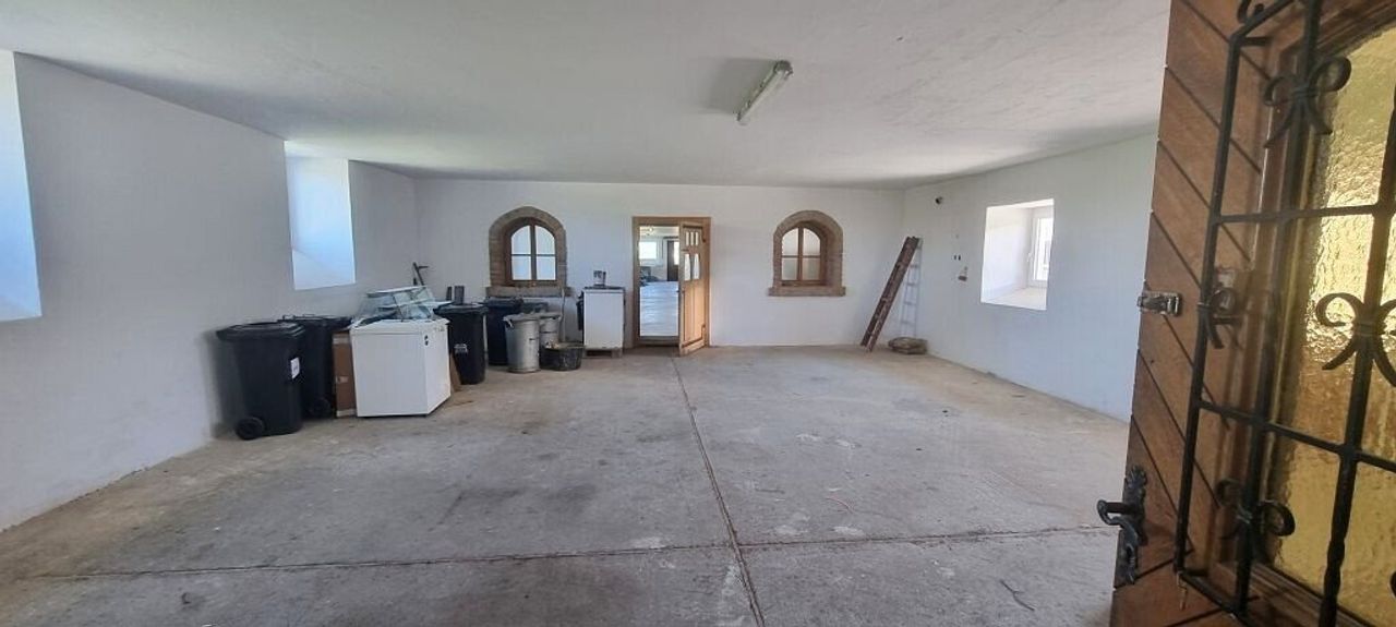 Die gesamte Garage, sowie der darüberliegende Bereich (jeweils ca. 140m² Nutzfläche) sind ebenfalls teilsaniert und fertig für die individuelle Nutzung.