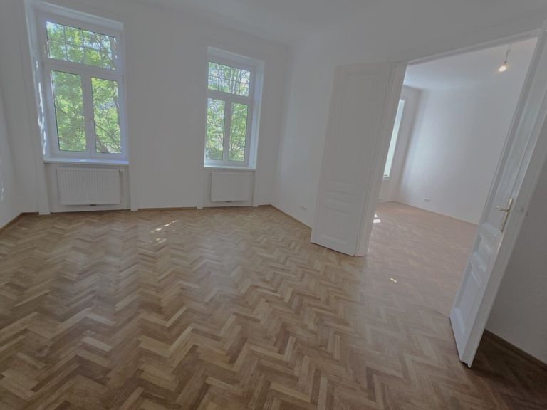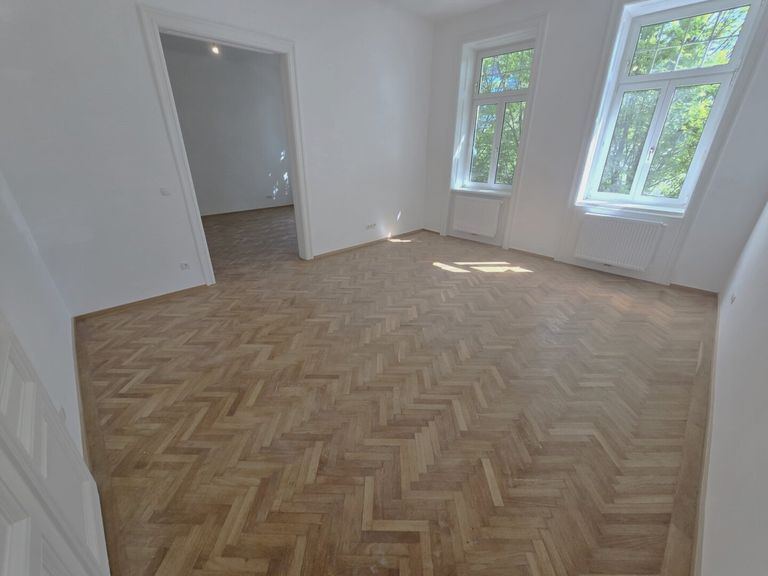 Zum Verkauf gelangt diese großräumige auf ca. 111m² aufgeteilte 3 Zimmerwohnung mit separater Küche und Esszimmer in einem klassischen Altbaustilhaus Diese 3-Zimmer Altbau Wohnung im Jugendstil besticht durch Ihre wundervollen und großzügigen Räume mit Flügeltüren, sowie hohe Wände, große Fenster , welche viel Helligkeit in der gesamten Wohnung bringt. Die lichtdurchflutete und sanierte Wohnung mit Veranda ist auf folgendermaßen aufgeteilt: + Vorraum 15,91m², mit Fischgrätenparkett ausgestattet + Zimmer1 23,27m², mit Fischgrätenparkett ausgestattet + Zimmer2 23,27m², mit Fischgrätenparkett ausgestattet + Zimmer3 20,80m², mit Kamin und Zugang zur Veranda - Hofseitig + Küche 10,59m², Boden verfliest - Hofseitig + Essplatz 06,43m², Boden...