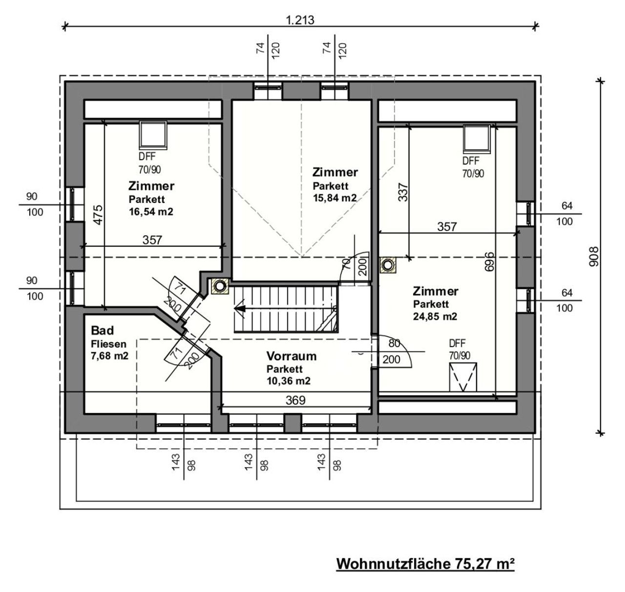 • Obergeschoss: Drei weitere helle Räume – perfekt für Therapieräume, Büros oder Besprechungszimmer, sowie ein modernisiertes Bad mit WC