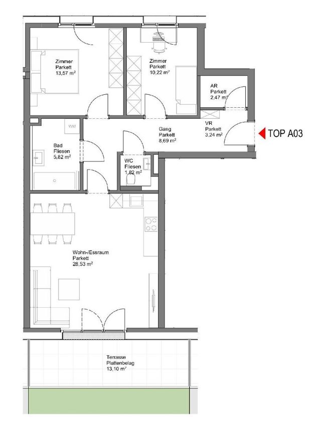 TOP A-03: 3-Zimmer-Gartenwohnung