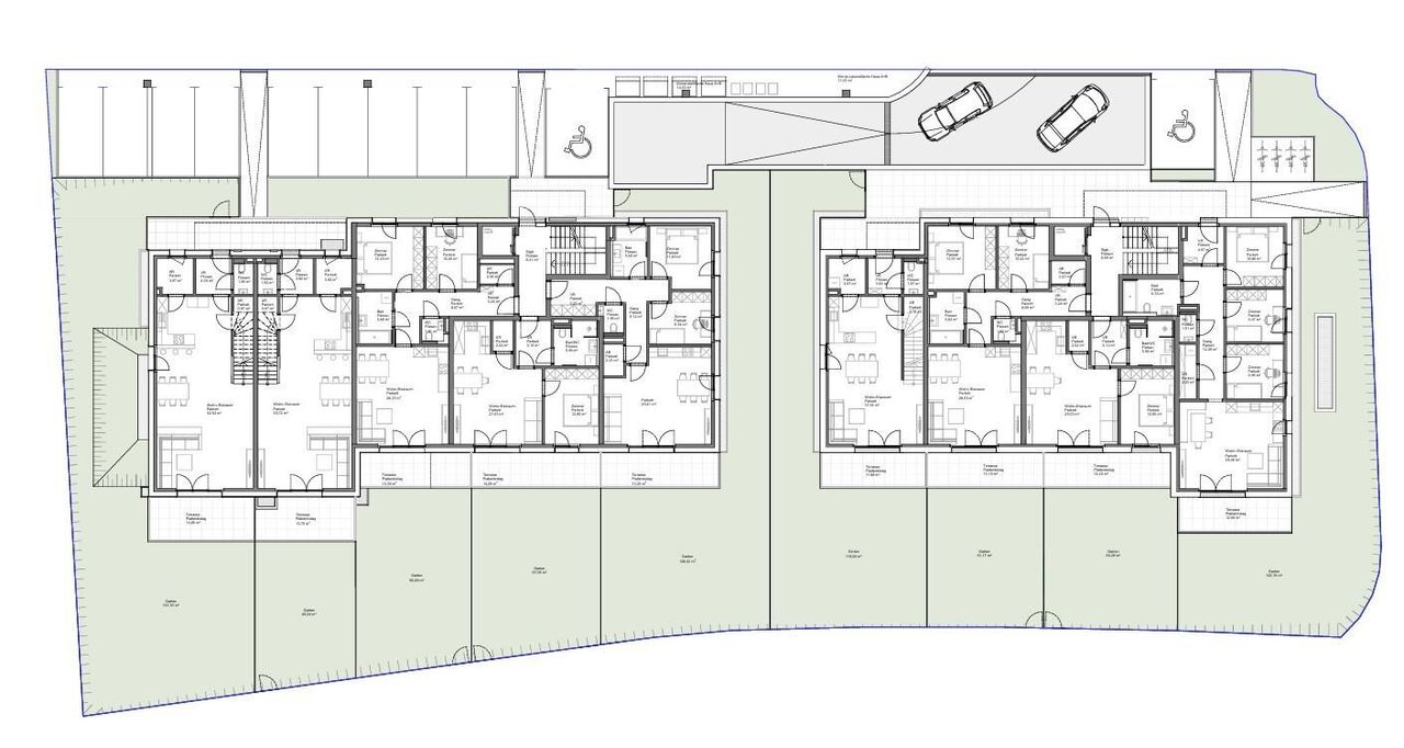 Jeder Wohnung sind ein oder mehr Tiefgaragenstellplätze zu je € 26.000,- zugeordnet und/oder ein Freistellplatz um € 12.000,-