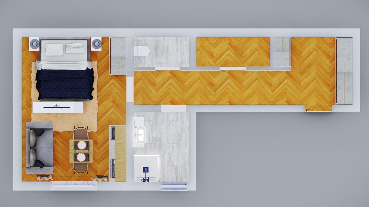 Vorraum, Bad/Du, WC extra, kleine Küche, Wohn-Essbereich, Abstellraum, Schlafzimmer