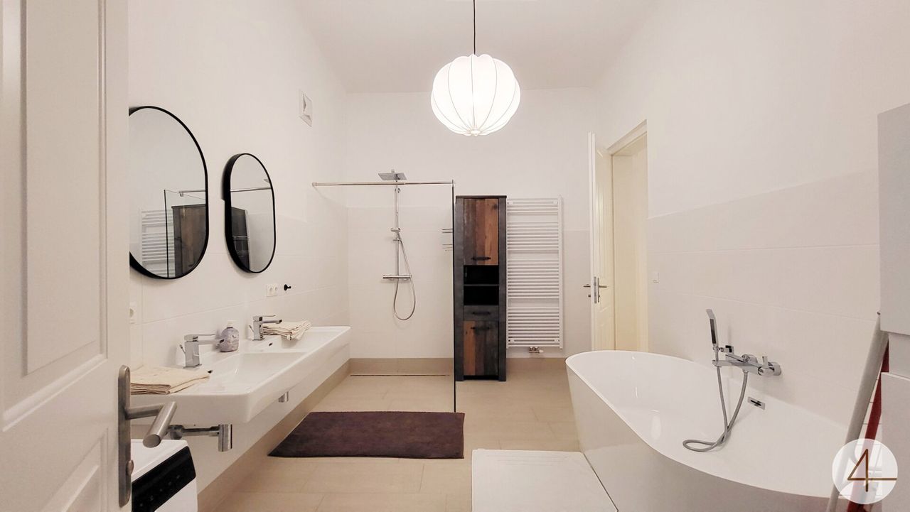 großes Badezimmer mit Dusche/Badewanne